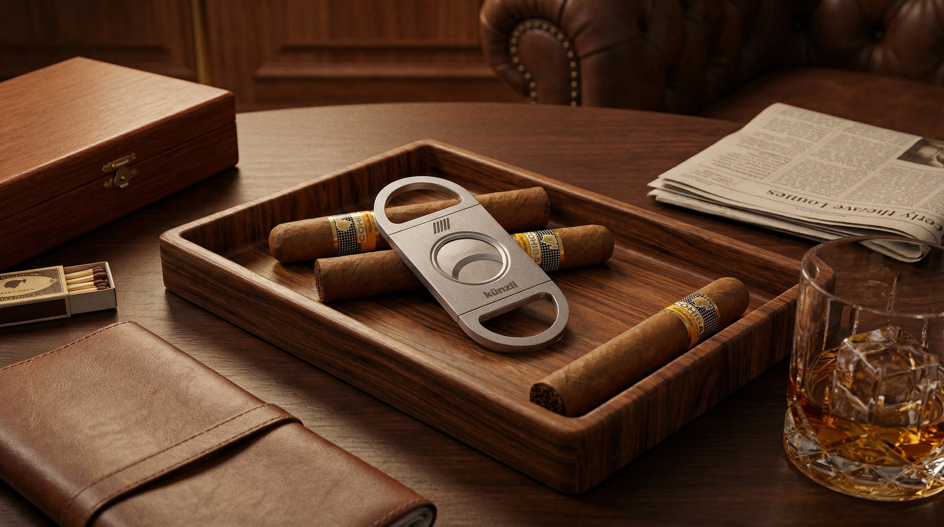 Schlichter Zigarrenschneider mit passendem Etui aus hochwertigem Rindsleder. Weich im Griff und sorgfältig verarbeitet. Es schützt den Zigarrenschneider und begleitet dezente Momente der Ruhe. Klare Linien, natürliche Struktur und ein Format, das angenehm in der Hand liegt.
