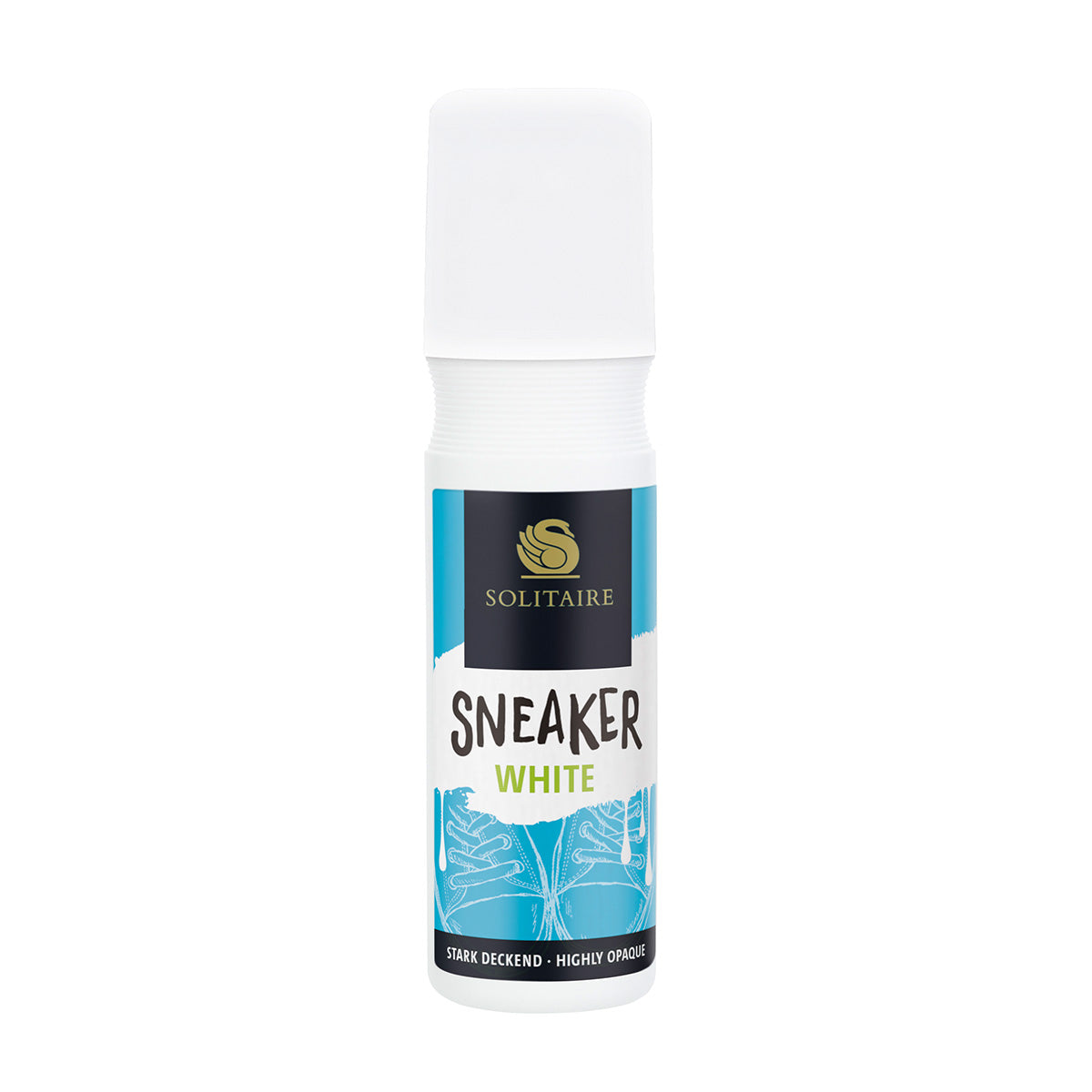 Deckende Schuhweiss Lösung für weisse Sneaker aus Glattleder und Textil. Weisse Pigmente kaschieren Kratzer und Abriebstellen zuverlässig und sorgen für ein gleichmässiges Erscheinungsbild. Auch für Sohlenränder geeignet. Die Flasche besteht aus 100 % recyceltem Kunststoff.
