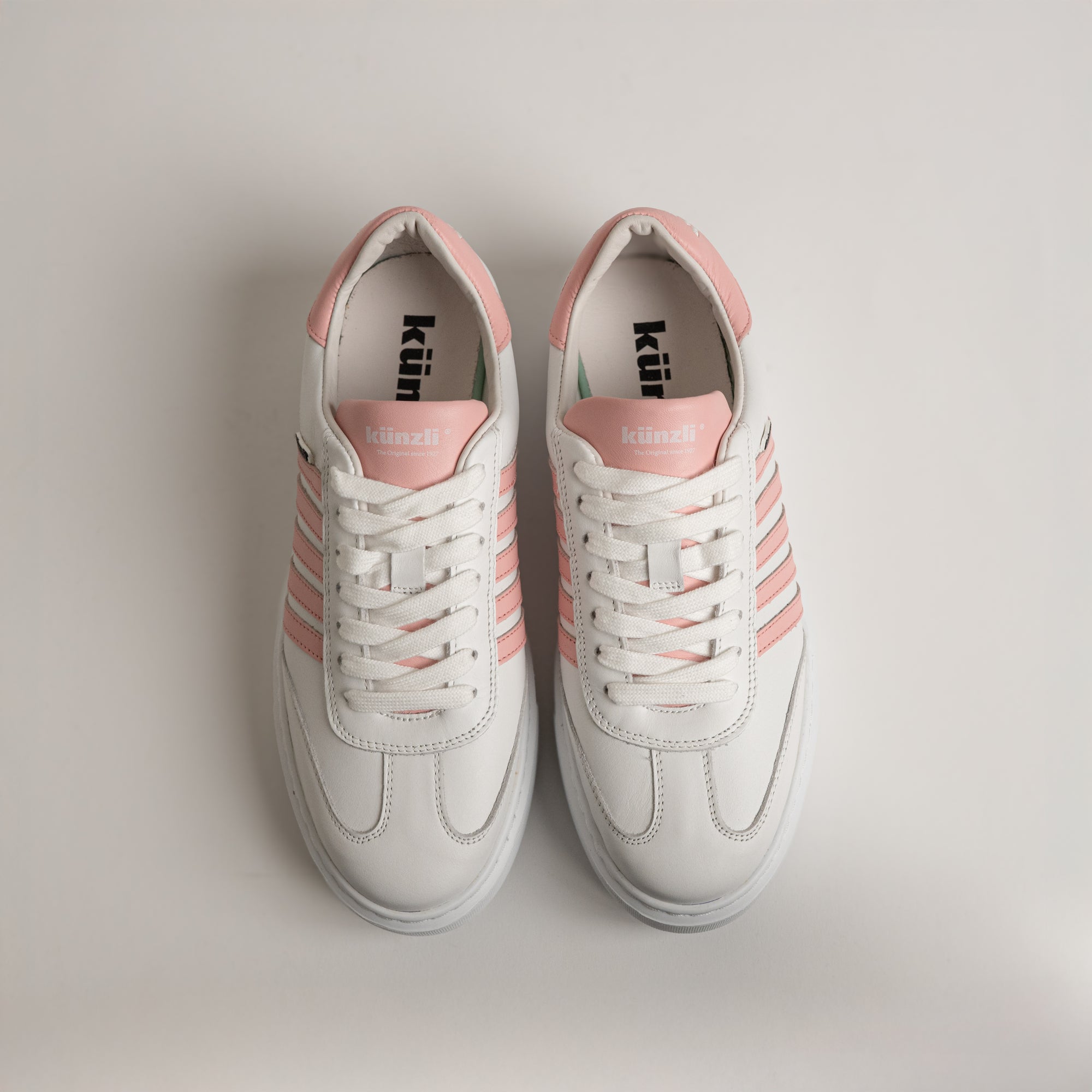 Nach einer Phase ohne Streifen kehrt Künzli zu seinen Wurzeln zurück. Die ikonische Schnürung wird wieder Teil unserer Sneakers und knüpft an die eigene Geschichte an. Ein Klassiker also seit 1927.