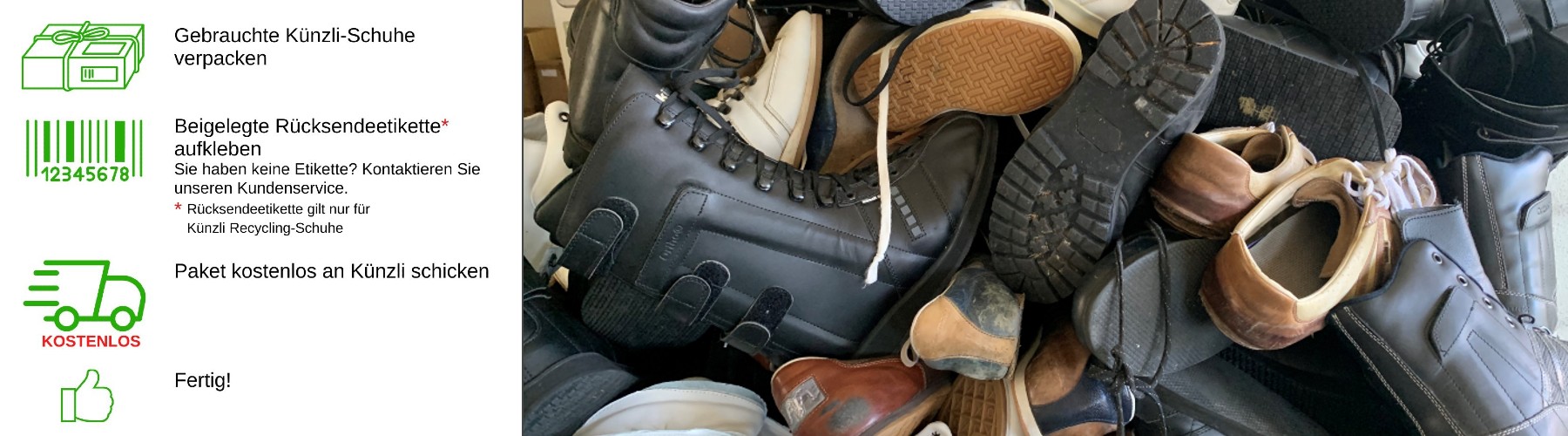 Getragene Schuhe werden komplett recycelt. Alle Materialien wie Leder, Gummi, Metall und Schaumstoff werden getrennt und wiederverwendet. So sparen wir Ressourcen und geben Rohstoffen ein zweites Leben.