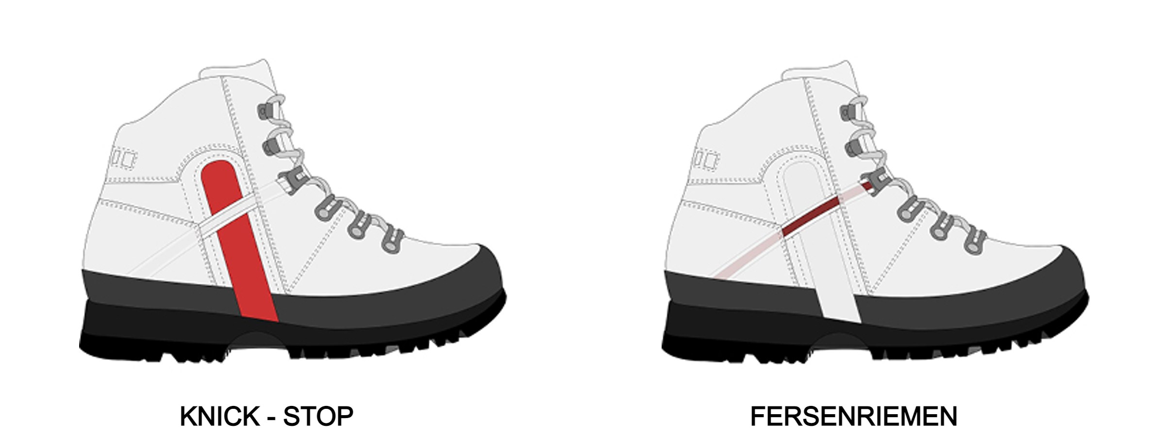Der seitliche Knick Stopp bietet dem Fuss Stabilität und fördert die propriozeptive Wahrnehmung.
